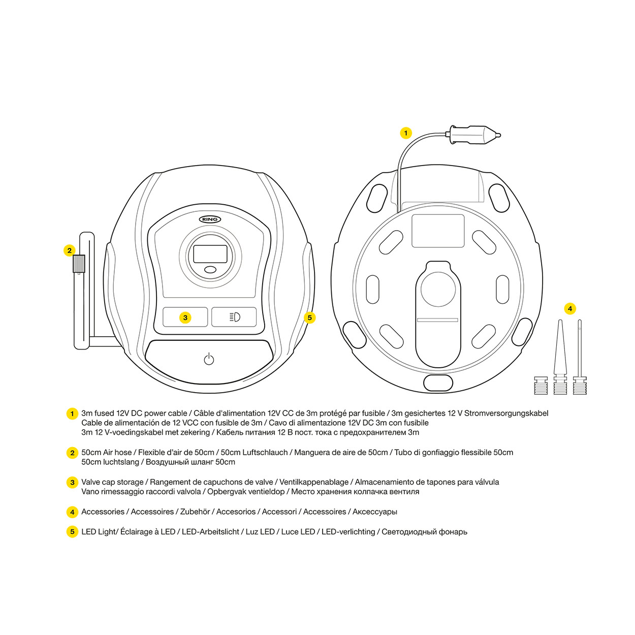 RTC400 - это цифровой скоростной компрессор со встроенным светодиодным фонарем. Работает от 12В разъема типа "прикуриватель", максимальное потребление тока 10 А. Рекомендован для спортивных легковых автомобилей, автомобилей с колесной формулой 4х4, микроавтобусов, автоприцепов и т.п. В комплекте удобный чехол для хранения и аксессуары для накачки мячей, шин и др. Шнур питания сворачивается внутрь устройства с помощью специального приспособления