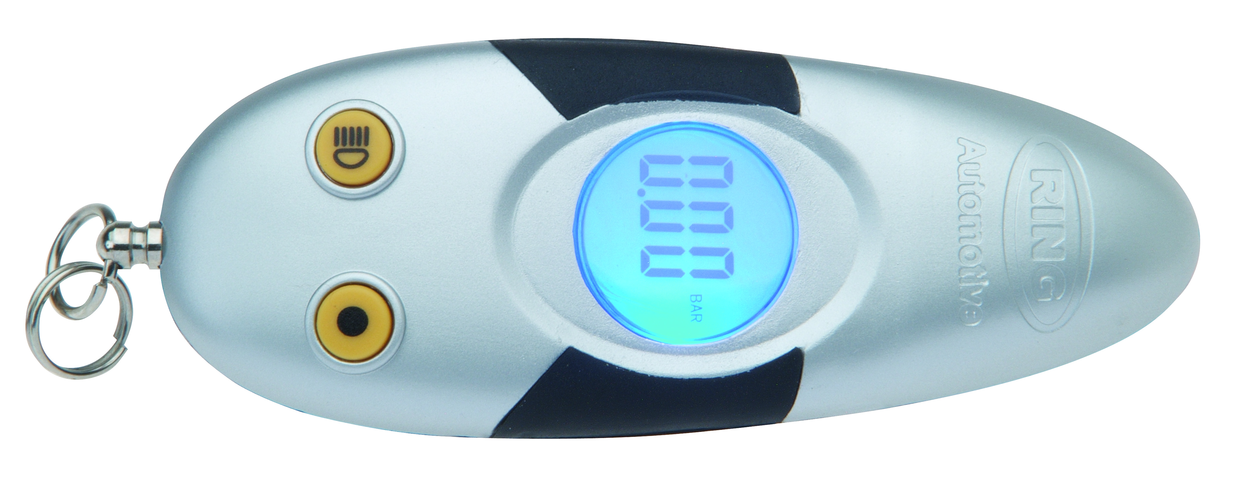 Уникальный компактный цифровой манометр в виде небольшого удобного брелока от английской компании Ring Automotive. Хорошо читаемый дисплей с приятной синей подсветкой. Полезное дополнение – светодиодный фонарик.
