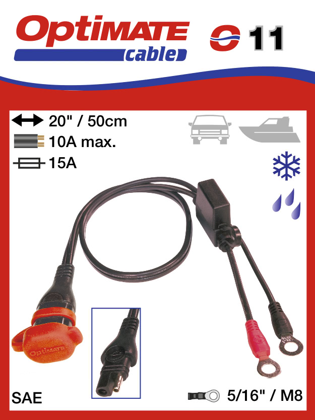 Стандартный кабель для постоянного подключения к батарее, поставляемый с зарядками optimate 5-6-7. Можно приобрести дополнительно, если планируется использовать зарядное устройство с несколькими транспортными средствами. Делает подключение зарядного устройства простым и удобным.