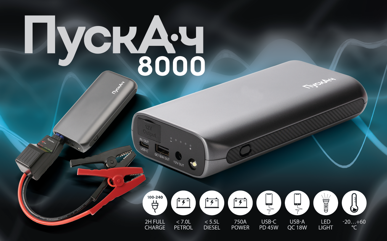 Аккумуляторы нового поколения обеспечивают номинальный пусковой ток до 750A (пиковый ток до 1500А). В устройстве применены очень стабильные ячейки с высокой отдачей тока.