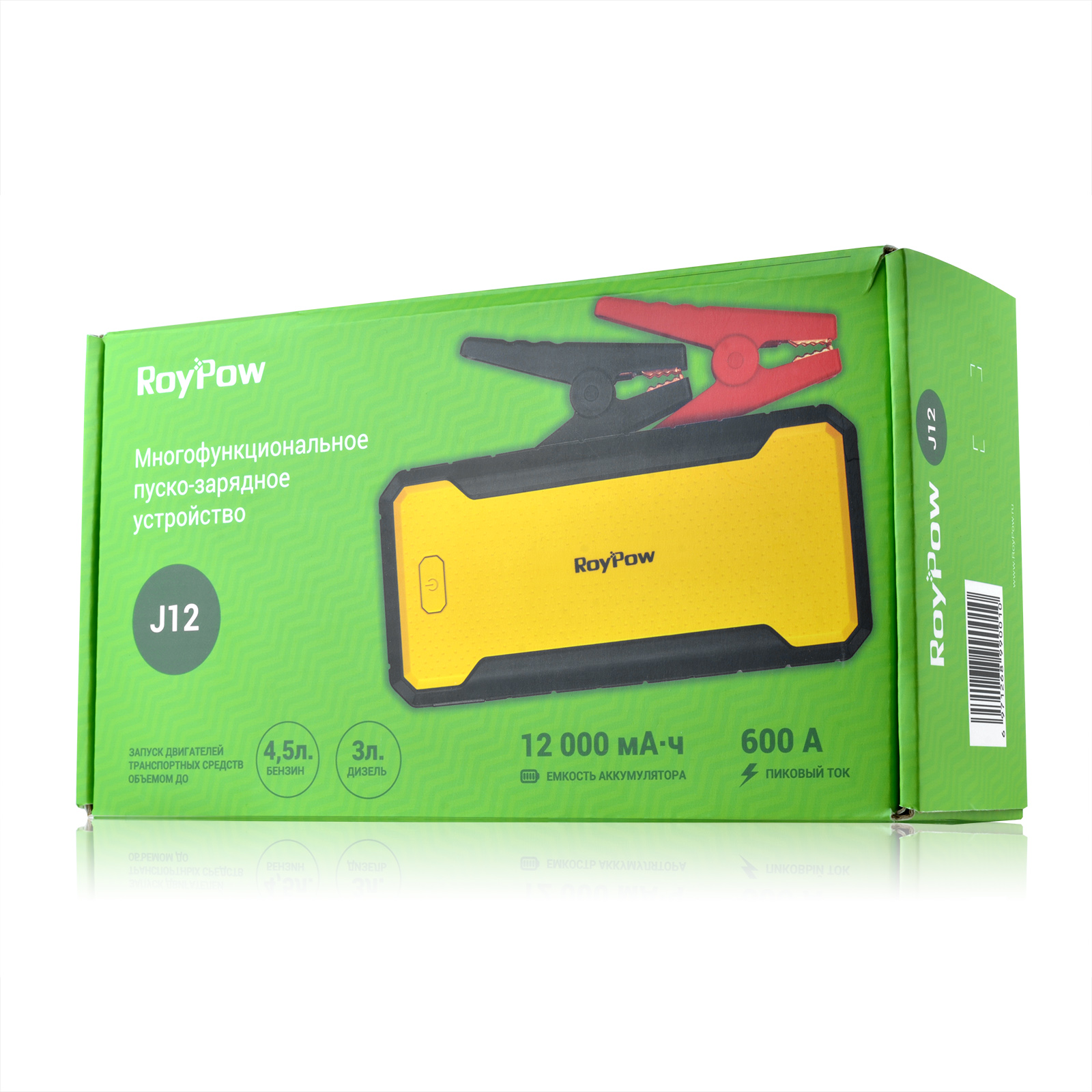 RoyPow J12 - многофункциональное устройство с емкостью 12000 мА·ч (44,4 Вт·ч). Основным отличием пуско-зарядных устройств RoyPow от обычных power bank (пауэр банк) является функция запуска двигателя. Модель RoyPow-J12 с пиковым током 600А может запустить двигатель: