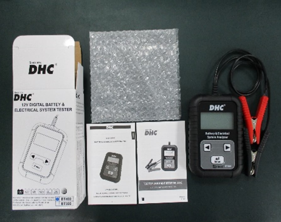 Тестер аккумуляторных батарей DHC BT400 с цифровым дисплеем.