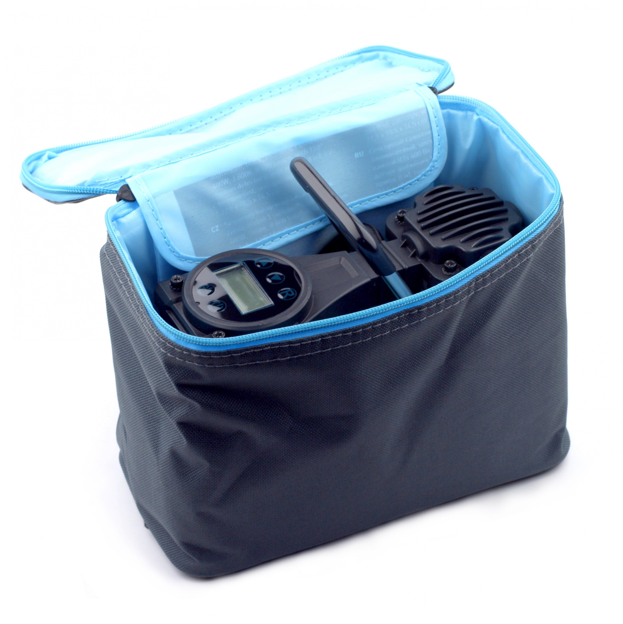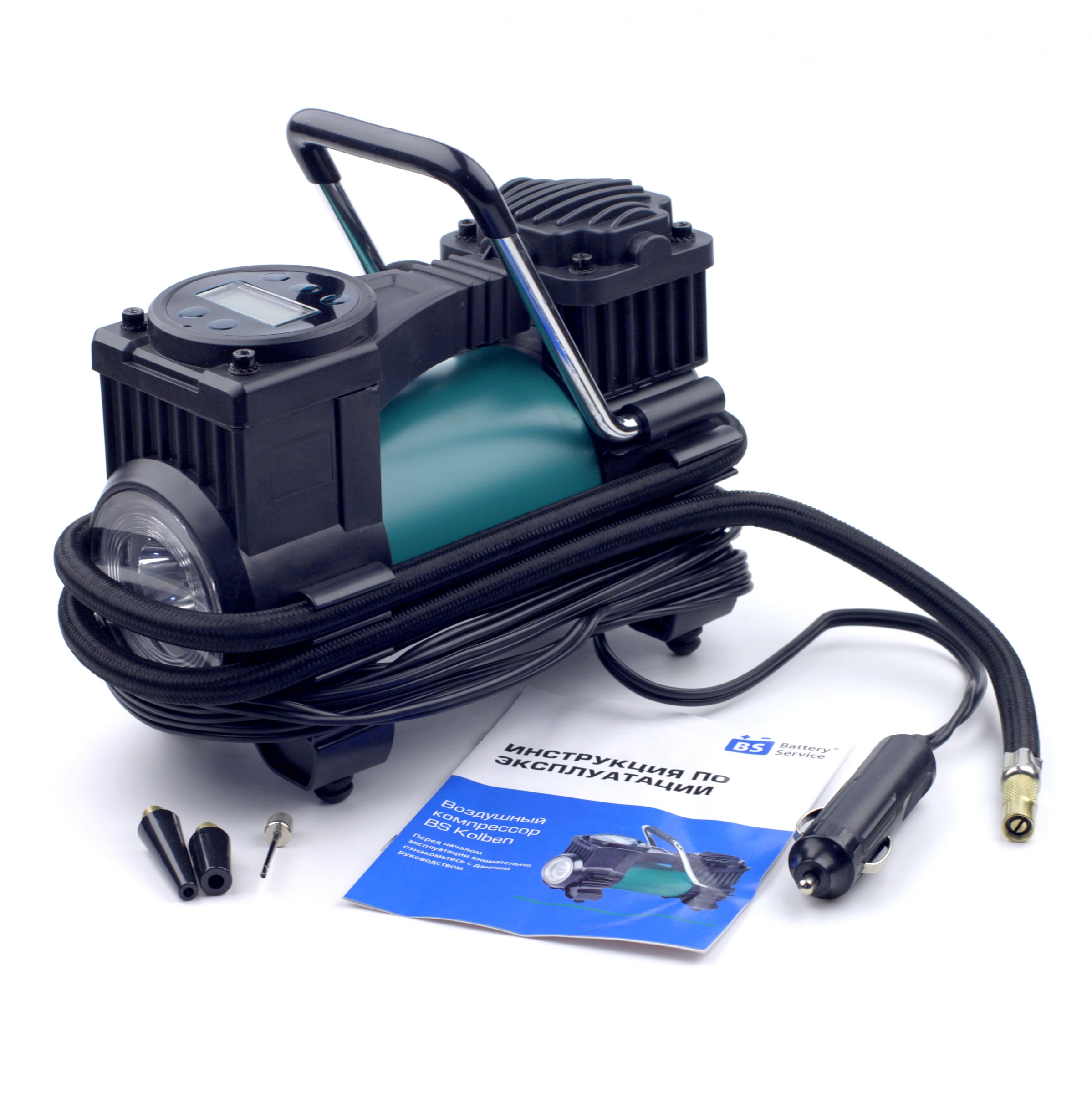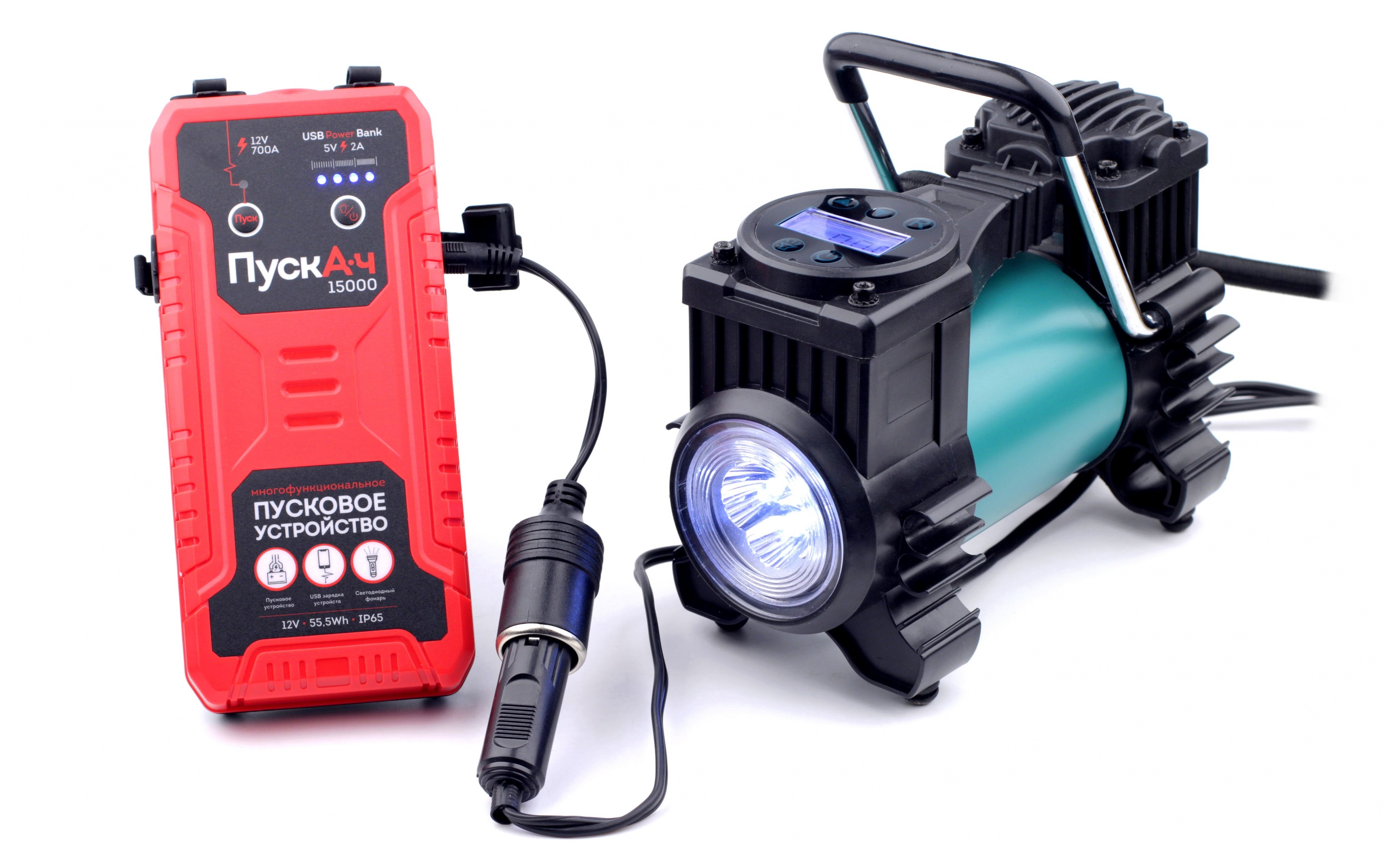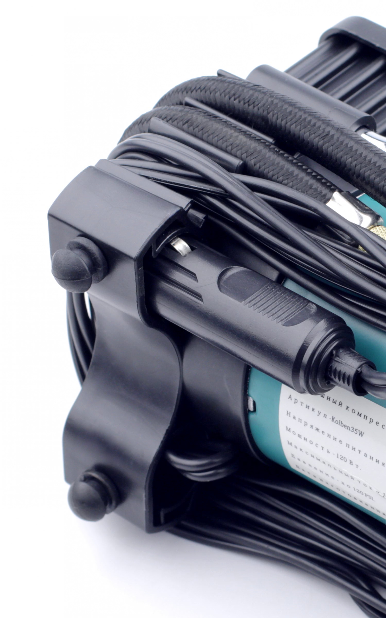 * Длина кабеля питания 400см позволяет подкачивать все колёса легкового автомобиля без лишних переключений, используя один из разъемов прикуривателя в салоне или в багажнике.