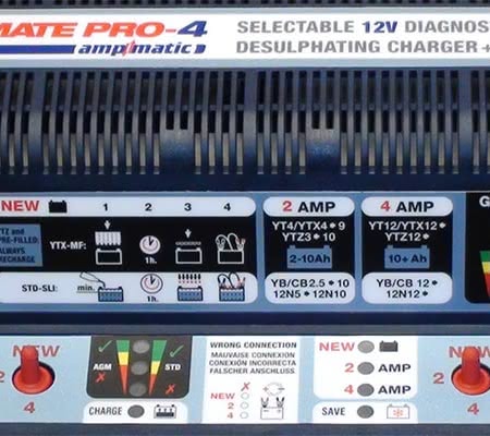 Автоматическое зарядное устройство для 4ех аккумуляторных батарей с режимом тестирования, десульфатации и хранения. Незаменимое диагностическое зарядное устройство для сервисных станцией, дилеров по продаже аккумуляторных батарей для ИБП и мото дилеров. Активация обслуживаемых батарей за 2 часа, активация батарей с отдельно поставляемым электролитом.